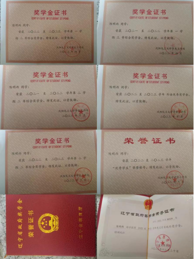 在学习方面,她始终把学习放在首位,在过去的两年里,她刻苦学习,勤于思考,努力提升自己的专业技能,有较强的求知欲和进取心,取得了较为理想的成绩:“成绩排名专业第二”,“综测排名专业第二”,曾荣获“辽宁省政府奖学金”,“2021-2022学年二等奖学金”“2021-2022学年三等奖学金”,“外语单项奖学金”,“2022-2023学年的外语单项奖学金和两个二等奖学金”,同时获得了“优秀学生”称号,在大二通过了英语四级,两年的英语学习让她有了很大的进步。 在学习的过程中,她不仅保持着高度的专注和热情,同时还发挥着强烈的感染力,身边的同学们都被她的学习态度所鼓舞。她总是乐于分享自己的学习心得和方法,以帮助他人提高学习效率。在这个过程中,她不仅提升了自己的学术水平,还带动了周围的同学共同进步。